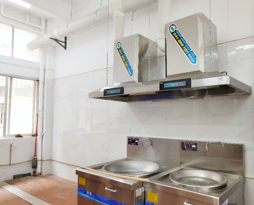 用了寶籃商用油煙凈化器,節(jié)省了傳統(tǒng)工藝里面的大型煙罩、大型笨重的油煙凈化器、及380V的風機,同時安裝簡便,使用哪個灶就打開哪邊的